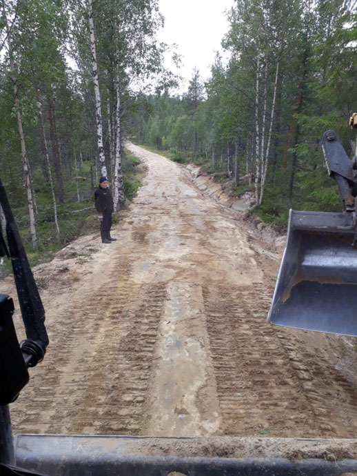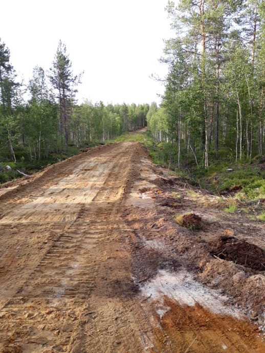 Mökkitielle puskulevyllä työnnetty penkkamaa